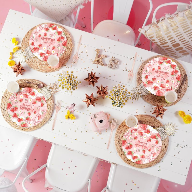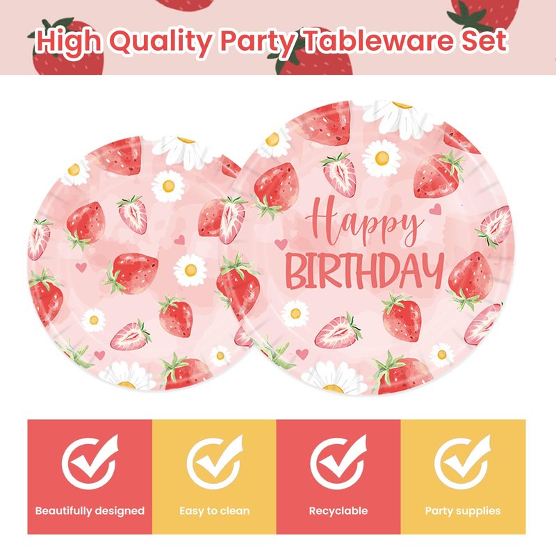 - đăConvenient And Quickă:Using our strawberry tableware party decorations makes it easy for you to enjoy the party. These paper plates and napkins require no clean up, just throw them away after the party, saving you clean up time. Perfect for birthday parties.