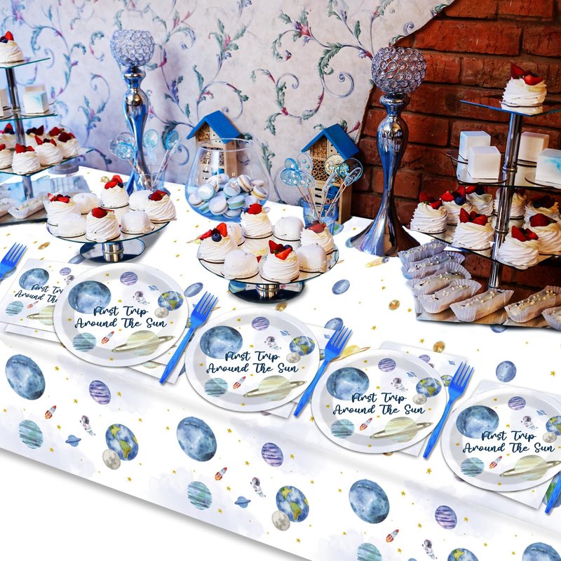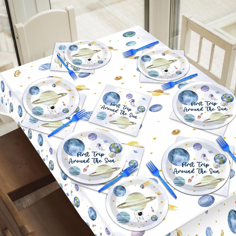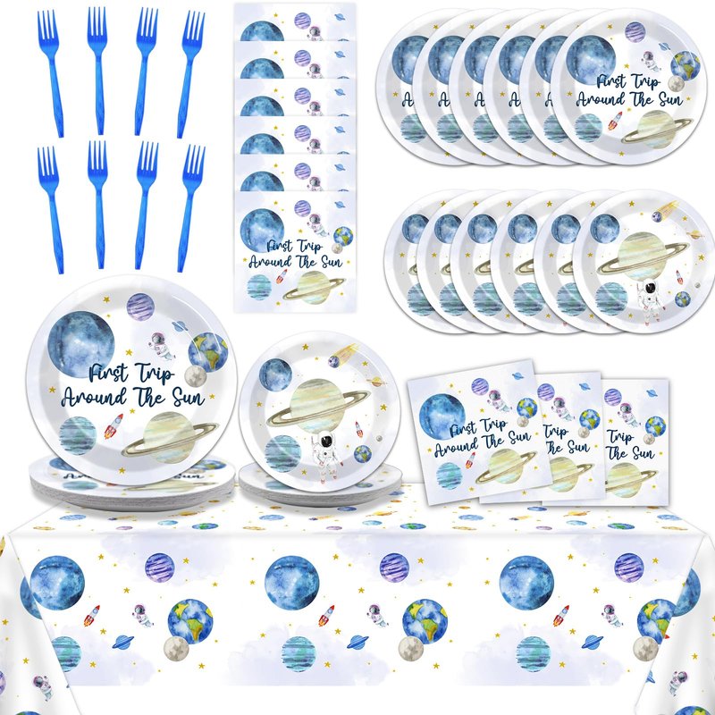 - Unique Design:The design of our 1st trip around the sun tableware set is based on the theme of outer space. The unique retro color system is combined with the outer space element pattern printing, which will bring you a unique artistic conception and beautiful vision.