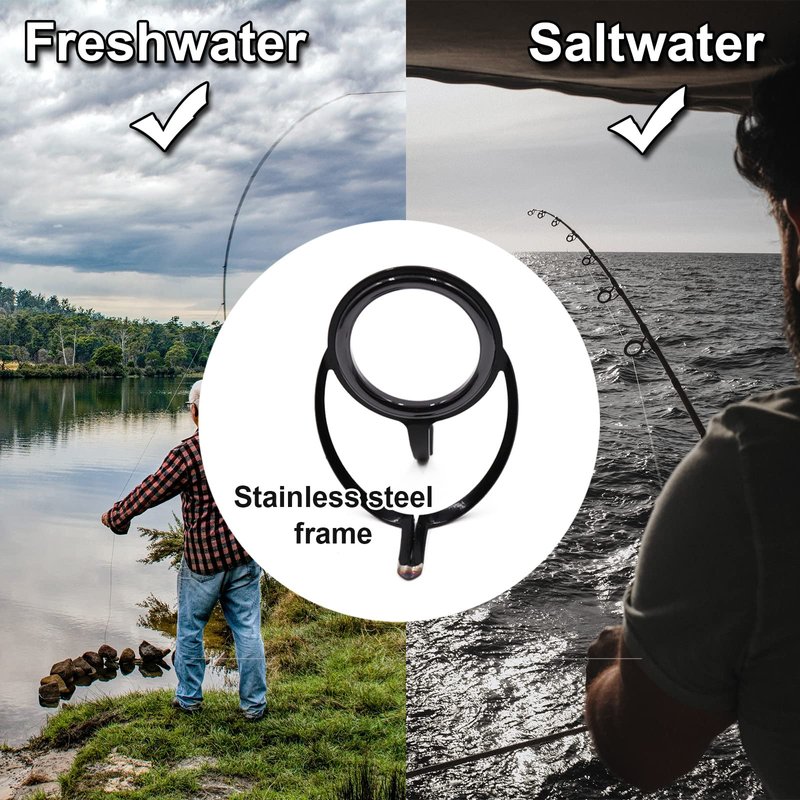 - [High Quality Rod Guides]Premium stainless steel frame and smooth, wear-resistant ceramic ring, excellent rust resistance in both freshwater and saltwater environments, strong and durable.