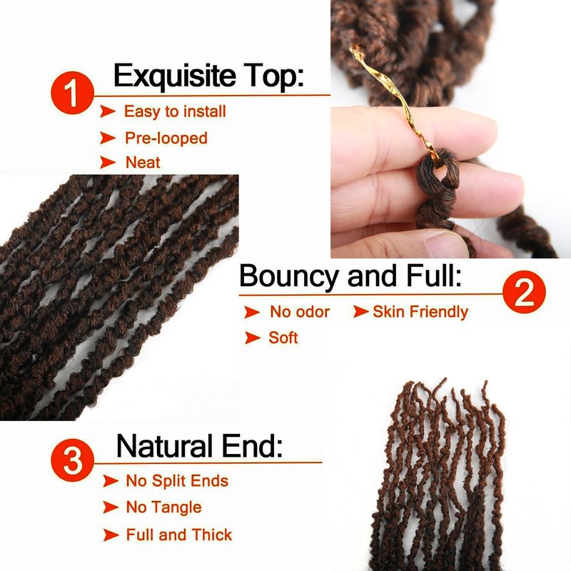 • Material: The soft faux locs crochet hair are made of High Quality Low Temperature Flame-Retardant Synthetic Fiber, 100% Kaneka lon Synthetic Hair Extensions, no itching, no shedding, no smelling.