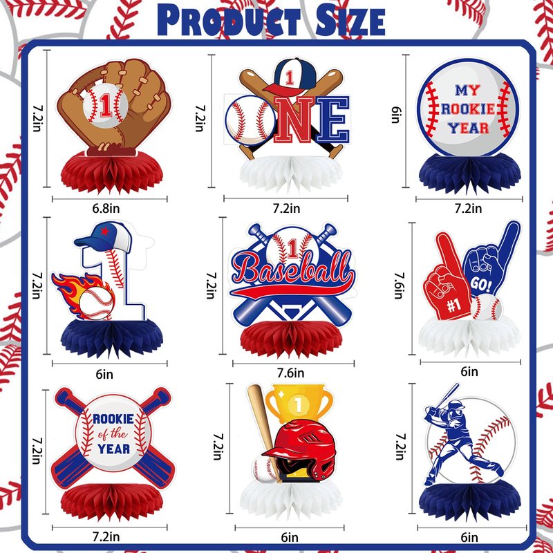 - Rookie of The Year Party Decor: Included 9 pcs baseball party decorations with different 3D double-sided pattern designs, 9 pcs baseball themed honeycomb stickers set.