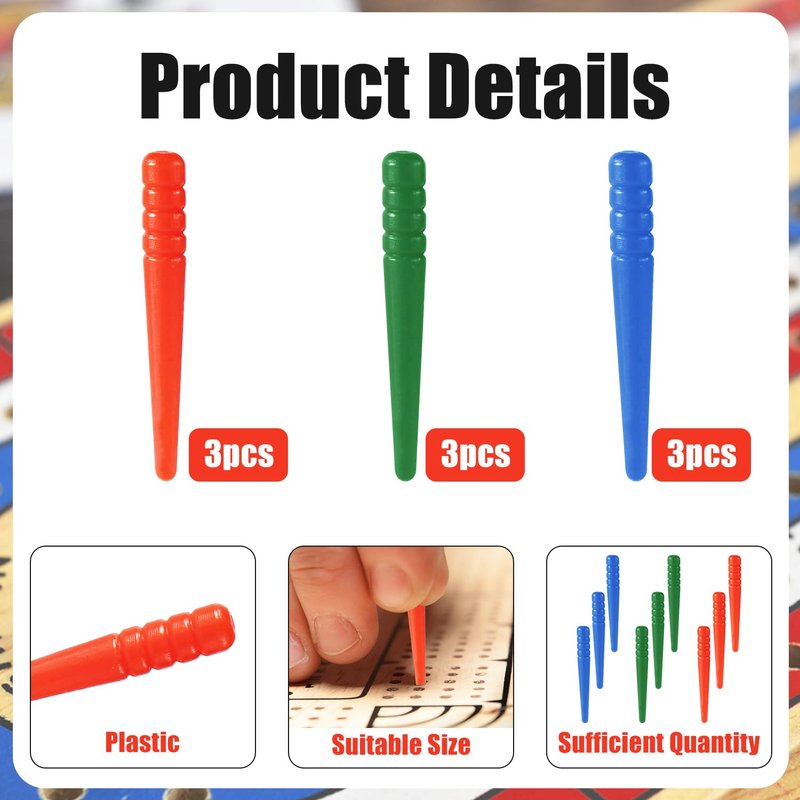 - Product Includes: You can receive 9 pieces of cribbage board pegs in 3 colors: blue, green, and red, 3 of each color, sufficient quantity to meet your game need and replacement.