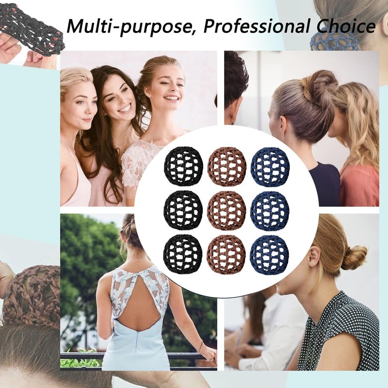9Pcs Hair Nets Invisible for Buns, 3 Colour Styles, Dance Hair Bun Ballet Net Stretchy Elastic Bun Hair Net, Hair Bun Holder Hair Accessories for Dancer Skater Bank Clerk, Women Ballet