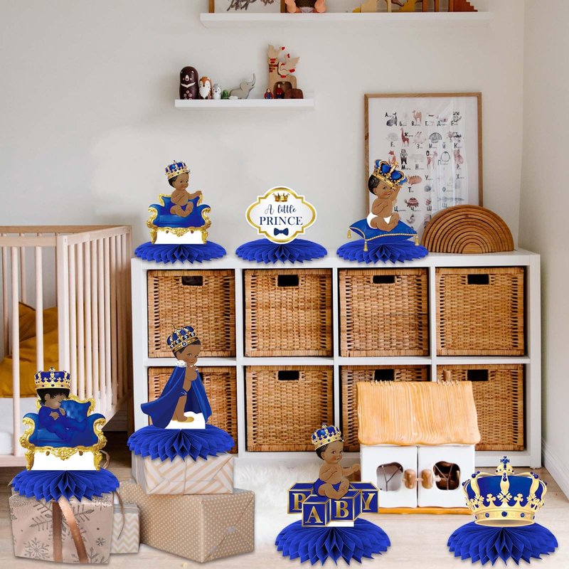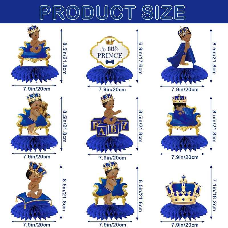 - What You Can Get: you will receive 9 pcs royal prince honeycomb centerpieces, including 9 pcs different cards, 18 pcs honeycomb bases. Enough quantity and variety of styles can meet your party decoration needs