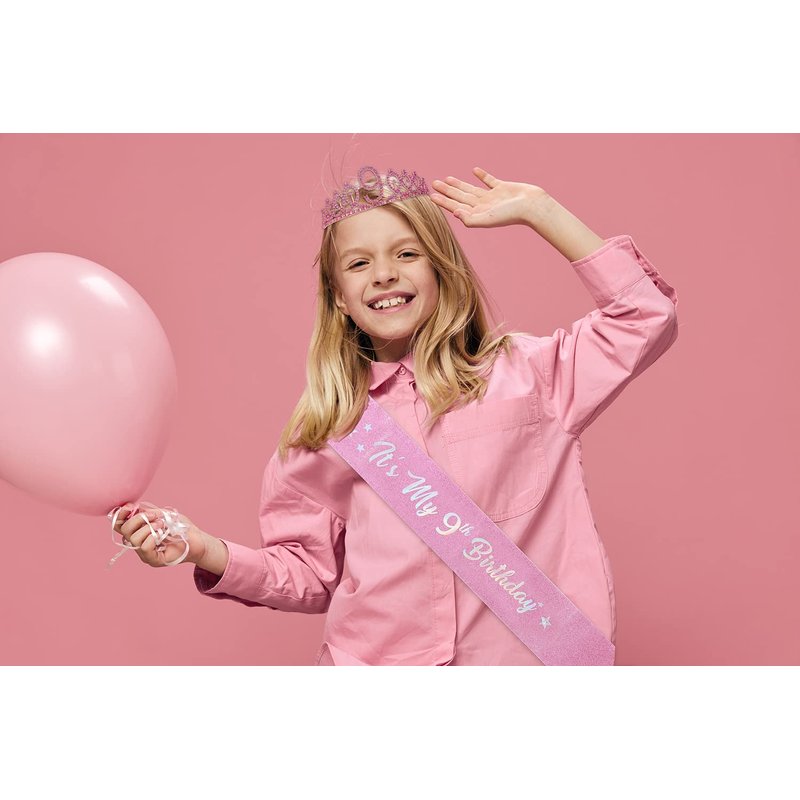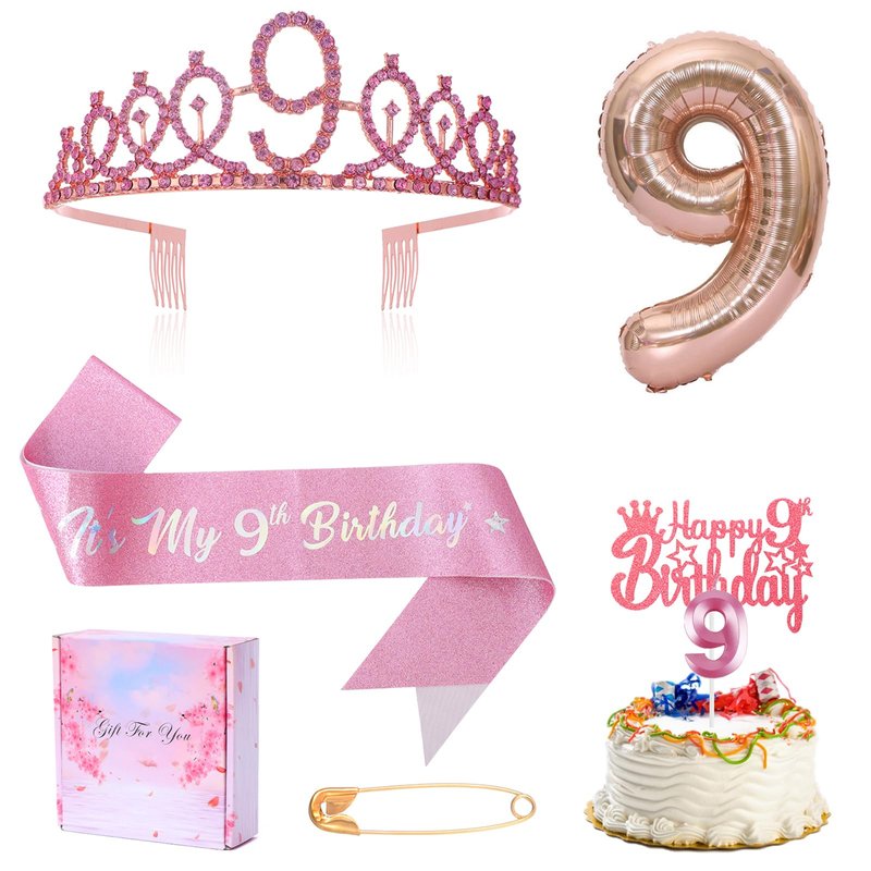 - 【Package Include】Pink 9th Birthday Candle, Pink "It's My 9th Birthday" Sash, 9 Birthday Crown/Tiara, 9 Birthday Cake Topper, 32inch Number 9 digital come with a pink gift box;