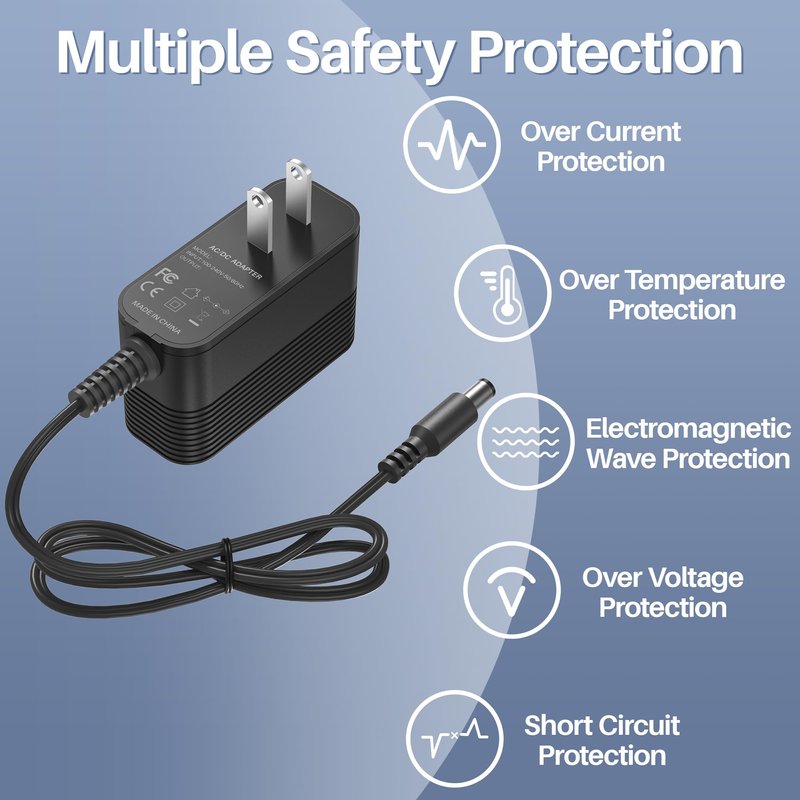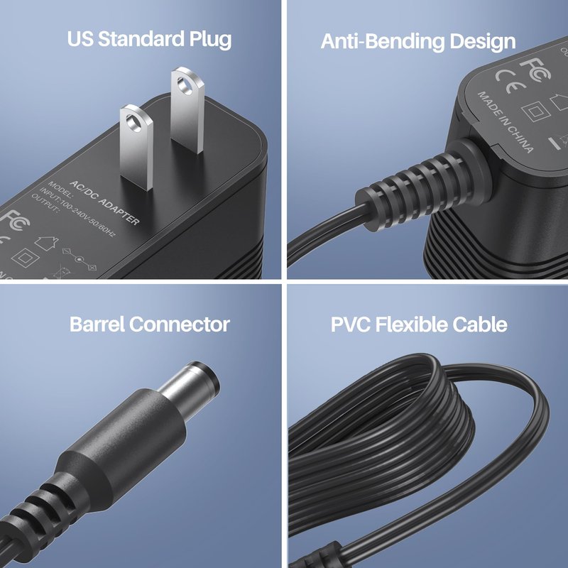 - 【Qualification】The replacements for DC 9V ac adapter power electronics charger are conformed to the standard of CE and FCC listed. 9V 1A charger for electric equipments has built in surge protection, over-current, over voltage, short circuit over temperature protected program