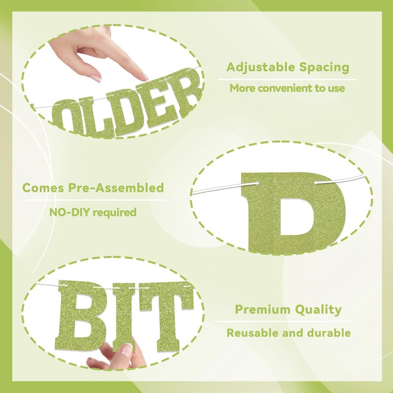 - PACKAGE: Green Glitter A Tini Bit Older banner with rope to hang