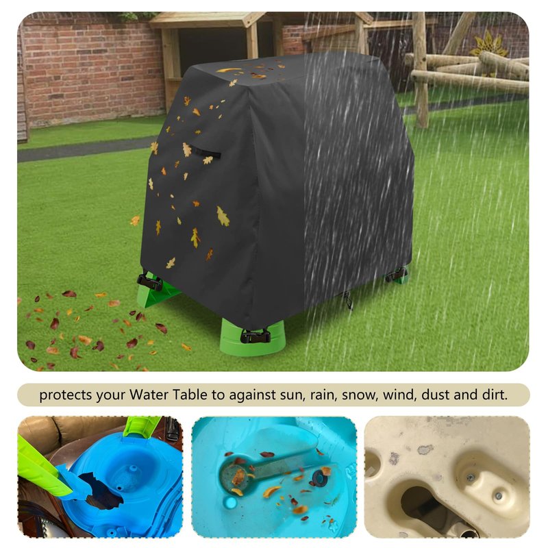 - 【Anti-Strong Wind】-The outdoor sand and water toy table cover There designed are three snap fasteners and a drawcord at the bottom, which can fix the protective cover to the sand and water toy table legs to prevent it from being blown away by strong winds.