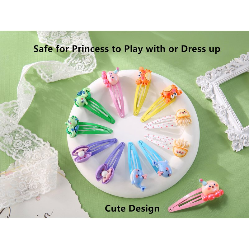 This package includes 12 pieces sea animal hair clips for little girls, teens and people who love sea animals. Great Beach Hair Clips! Also great for sea animal themed party favors.