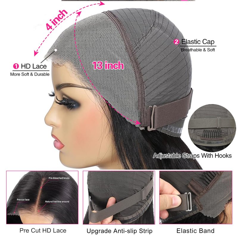 • 【WEAR AND GO GLUELESS WIG ADVANTAGE】Real Glueless Wig.Just 3 Seconds to Wear.Pre Cut Lace Glueless Wig Make Installation More Easy and Convenient,No Glue,Save Time,No Skills Needed,Just Wear and Go! Beginner-Friendly.
