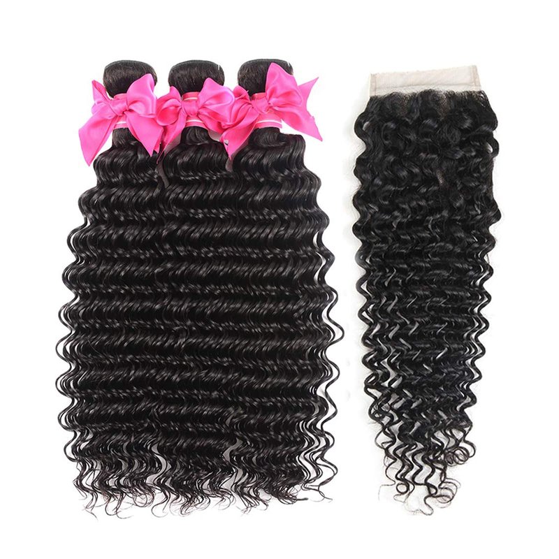 - Hair Material: 9A Brazilian Virgin Deep Wave Bundles With Closure,4X4 Free Part Closure.100% Unprocessed Human Hair Extensions