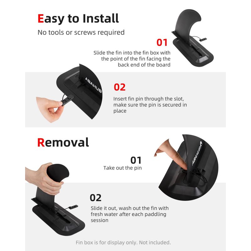 - Easy to Install and Remove: The fin is easily slide and removed with the quick-release pin. For some tight fin box, it may require extra strength to push or even knock it in. Simply insert the fin and secure the pin to install. Screws and no tools are needed.