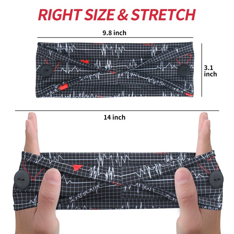 - Scrub headbands with double buttons for mask: Hand sewed with 2 big buttons for hanging your mask , it is a great ear pain saver solution , black and crystal button colors used to still maintain the whole beauty of design , and the buttons are in the right place to keep your mask secured. It is a small thing yet filled with love , perfect for nurse , dentist,kids , fashion and other healthy workers etc. Care wash: Hand wash with cold water. Lay flat to dry.