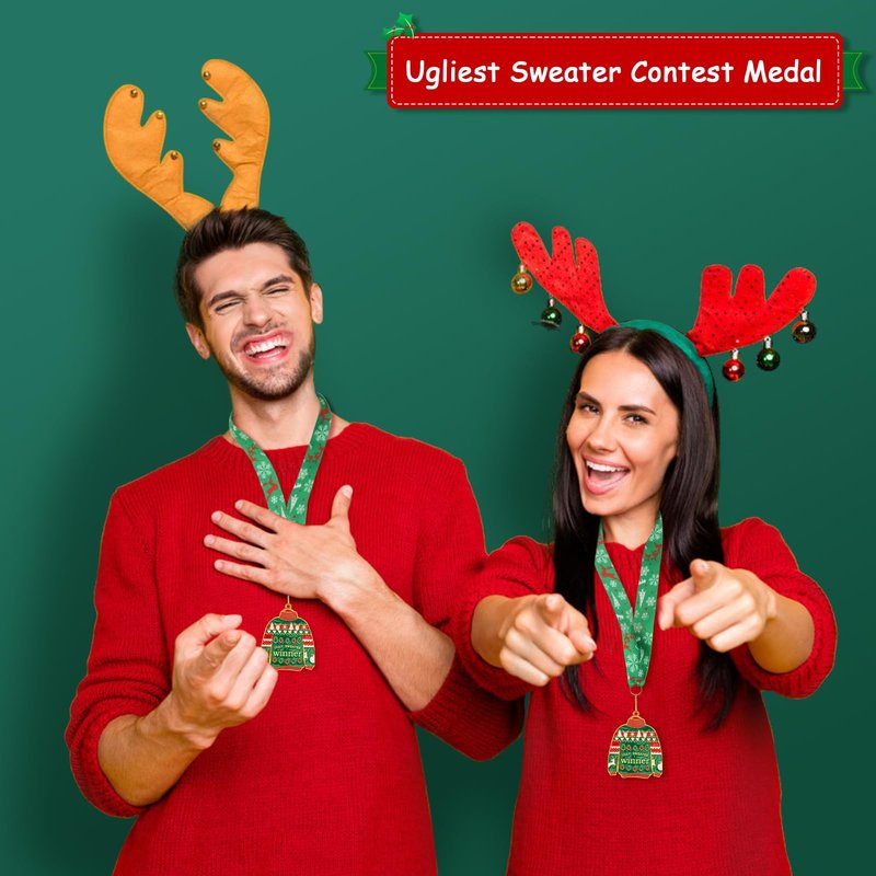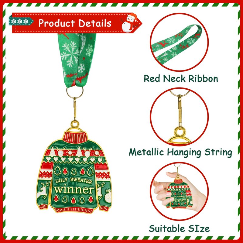- Add More Fun to Parties: our ugly sweater award is designed for ugly sweater contest; You can hold a party at Christmas, invite your friends and family members to join in the contest, and present medals for the winners, making your party more enjoyable