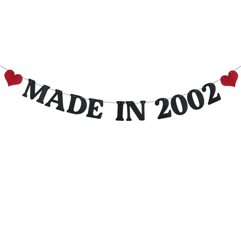 ABCpartyland Black Glitter Paper Made in 2002 Banner,Funny 22nd Birthday Party Decorations Supplies, Pre-Strung,Letters Black,MADE IN 2002