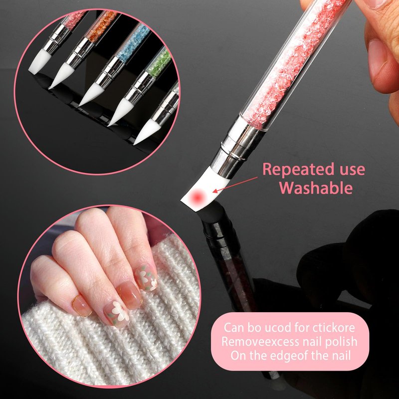 - Wide application: This silicone nail tools is not only suitable for all kinds of nail polish, but also can complete various nail art tasks, such as: Wiping magic mirror powder, adjusting gel, pressing stickers, carving, wiping gel overflow, drawing patterns, pasting diamond shapes, pasting sequins with silicone pens, etc. This silicone nail tools for nail art brings more convenience to your nail art design.