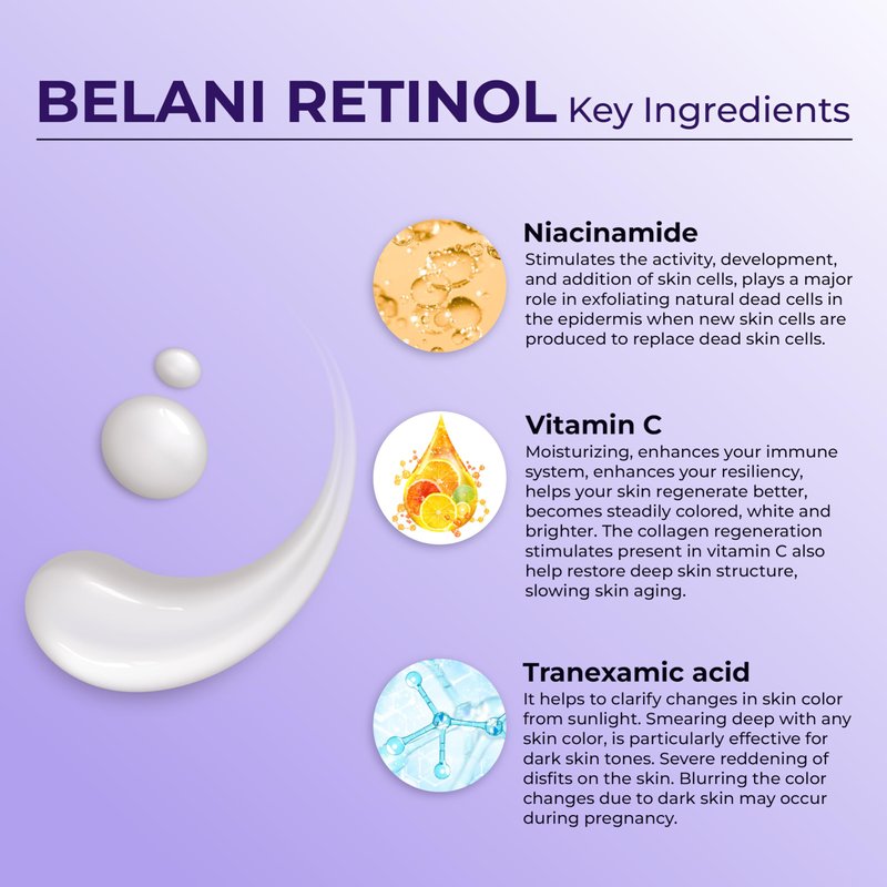 ABERA Belani Retinol Cream for Face, Melasma Treatment, Dark Spot Remover, Reduce Fine Lines, Anti-Wrinkle, Anti-Aging Neck and Décolleté, Night Cream For Women (1.01 Fl Oz)