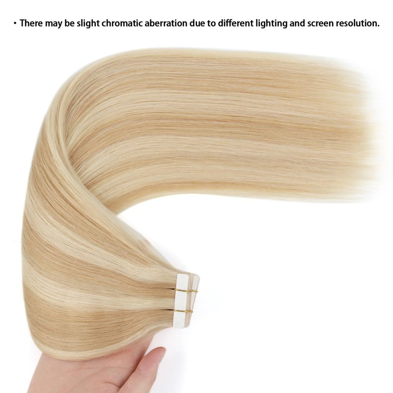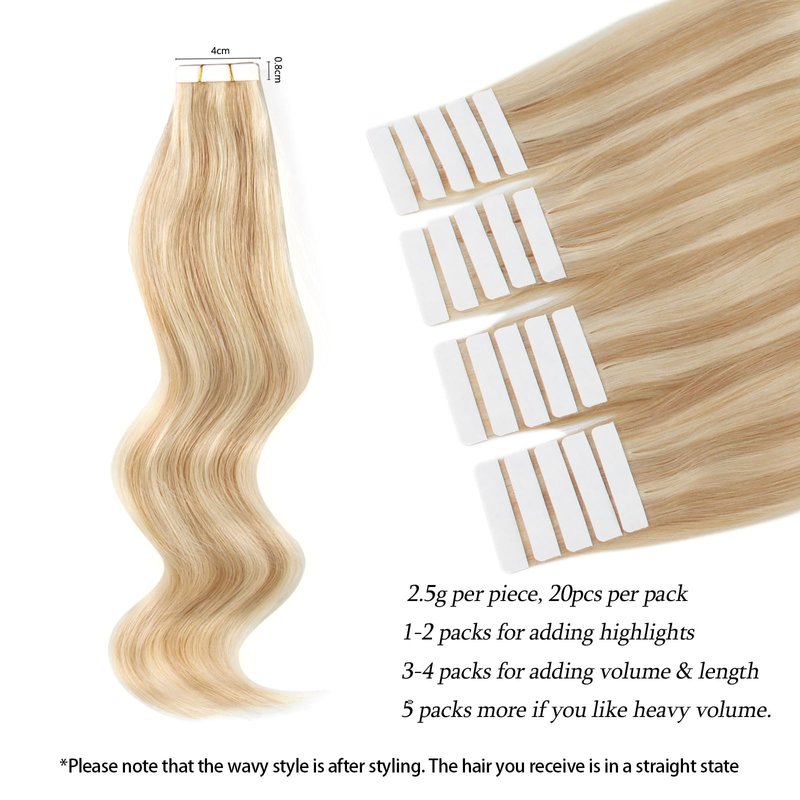 ABH AmazingBeauty Hair Pre Taped Remy Sun Kissed Highlighted Human Hair Double Sided Tape Hair Wxtensions Skin Weft, Invisible, Seamless, Dark Dirty Blonde with Platinum Ash Blonde P12-60, 22 Inch