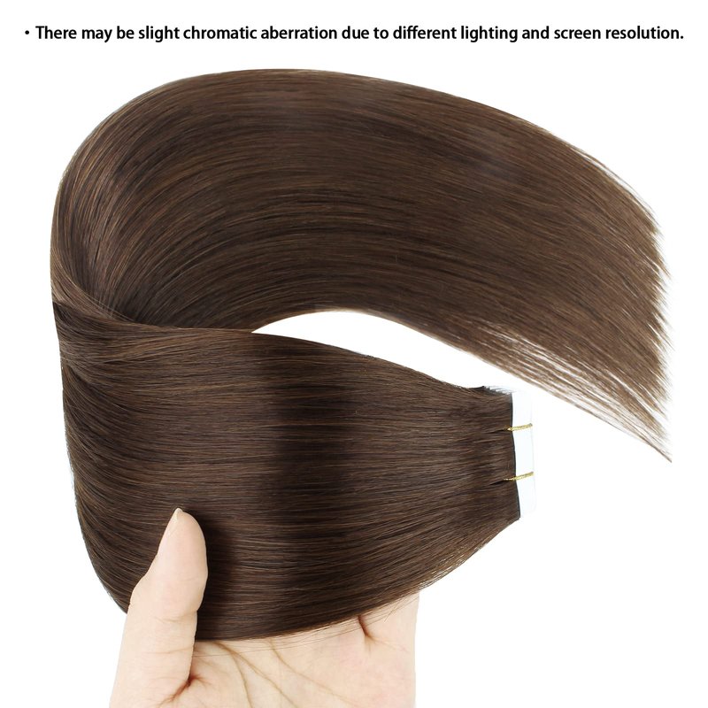 ABH AmazingBeauty Hair Semi-permanent Tape Attached Real Remi Remy Human Hair Extensions Tape in 50g 20pcs Invisible Seamless Reusable Skin Weft Dark Brown Color 2 18 Inch