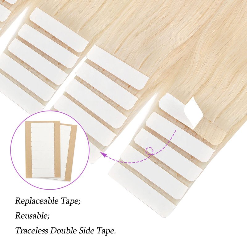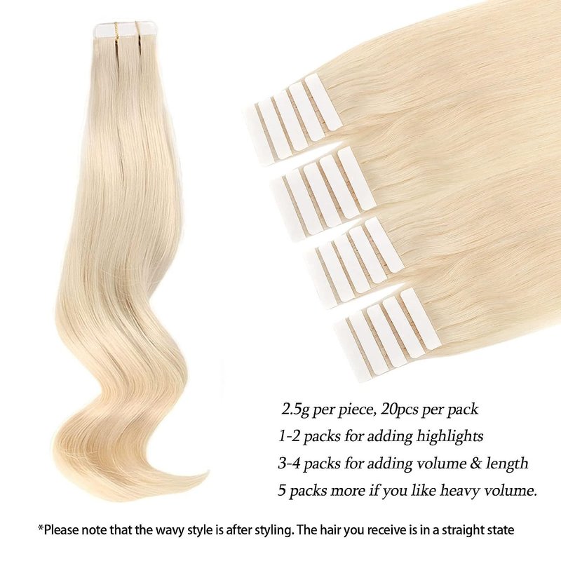 ABH AmazingBeauty Hair Tape in Hair Extensions Human Hair Semi-permanent Tape Attached Real Remy Tape Extensions 50g 20pcs Invisible Seamless Reusable Skin Weft Platinum Blonde Color 60 18 Inch
