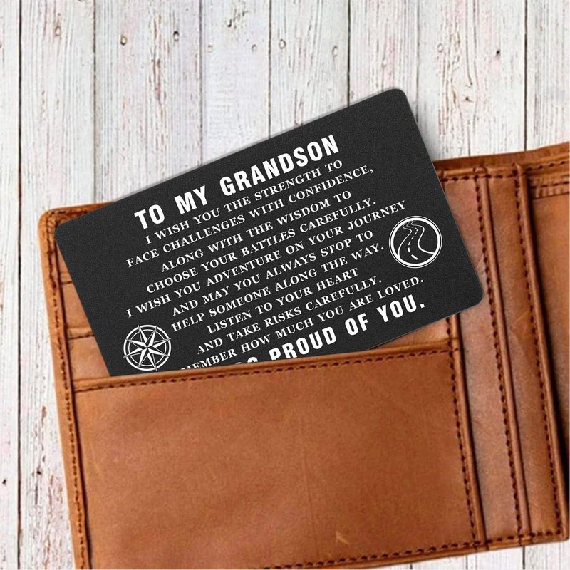 - Grandson Gifts, Show your Grandson how much you love and care about him with this special metal wallet insert card