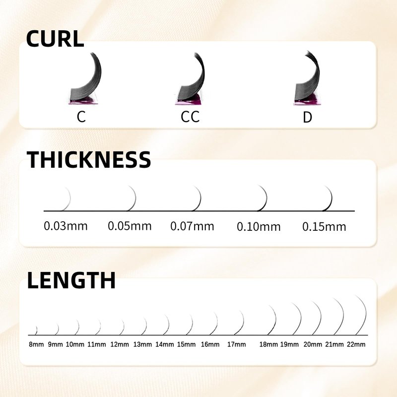 - 【Specifications】ABONNIE classic eyelash extensions is 12 rows in one tray. Curl: C/CC/D, Thickness: 0.03 0.05 0.07 0.10 0.15mm, Length: Mix 8-15mm, Single: 8mm 9mm 10mm 11mm 12mm 13mm 14mm 15mm 16mm 17mm 18mm 19mm 20mm 21mm 22mm.You can choose the best suitable length that make your work easily.