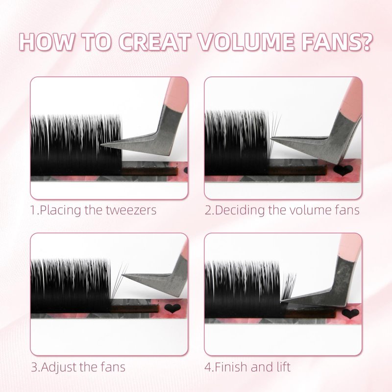 - 【New Style Lash Extensions】 The easy fan lashes are very easy to apply. Blossom fans easily in just four steps: 1.Placing the tweezers. 2.Deciding the volume fans. 3.Adjust the fans. 4.Finish and liftYou can make any fans by yourself. No longer need to worry about making fans.