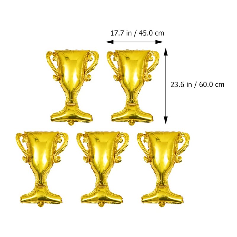 ABOOFAN 5Pcs Gold Foil Balloons Trophy Mylar Balloons for Basketball Football Soccer Anniversary Birthday Party Decor Supplies