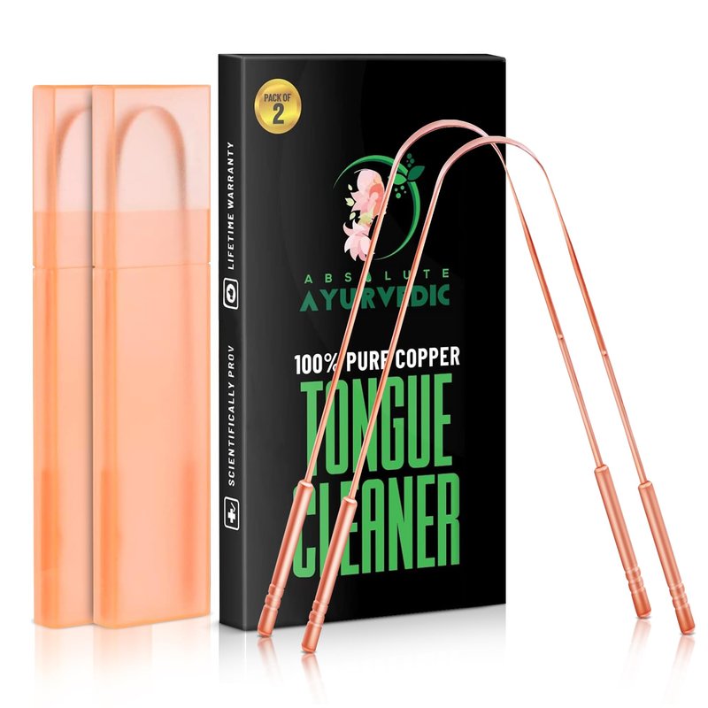 - ✅GET RID OF BAD BREATH: Removing white mucus coating on the tongue - Excellent remover of toxin and plaque. Absolute ayurvedic copper tongue scraper for adults has got you covered. Not just that, the immediate benefits of scraping your tongue with this self-care product include fresh breath for improved confidence and better overall health.
