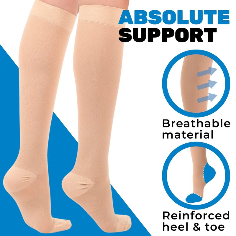 ABSOLUTE SUPPORT Made in USA - Opaque Compression Socks for Women and Men 30-40mmHg - Graduated Support Compression Stockings for Post Surgery Recovery - Beige, Small - A301BE1