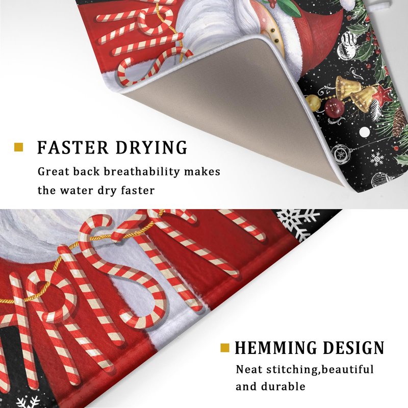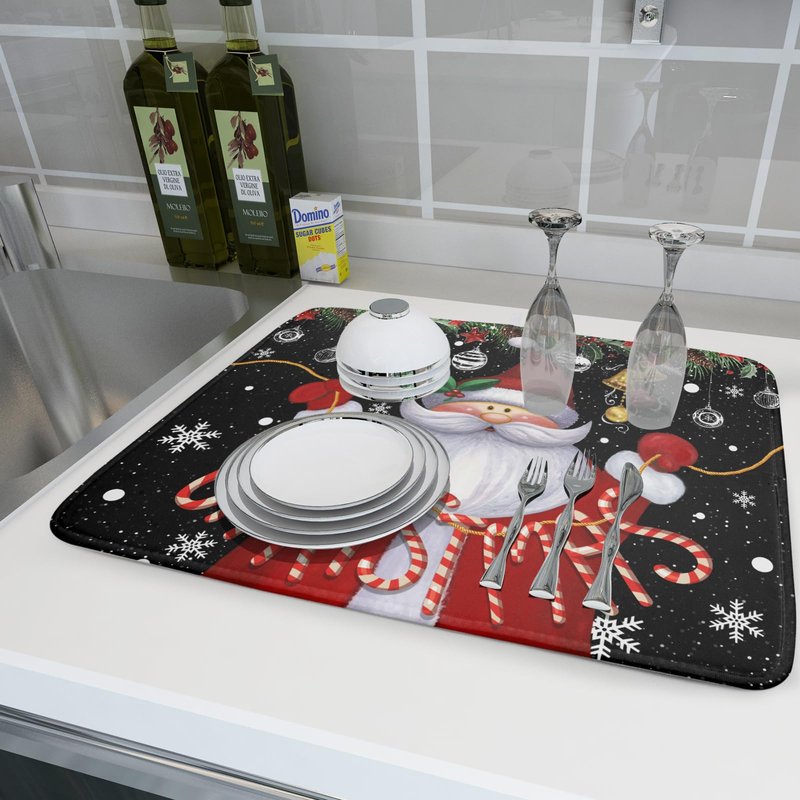 - 【ABSORBENT MATERIAL】-- This santa claus dish mat is made of absorbent microfiber and composite sponge material in the middle, which quickly absorbs water to keep the kitchen countertop dry and clean. Use alone or together with a dish drainer. Our no-slip base adds stability when drying glassware or other fragile items.