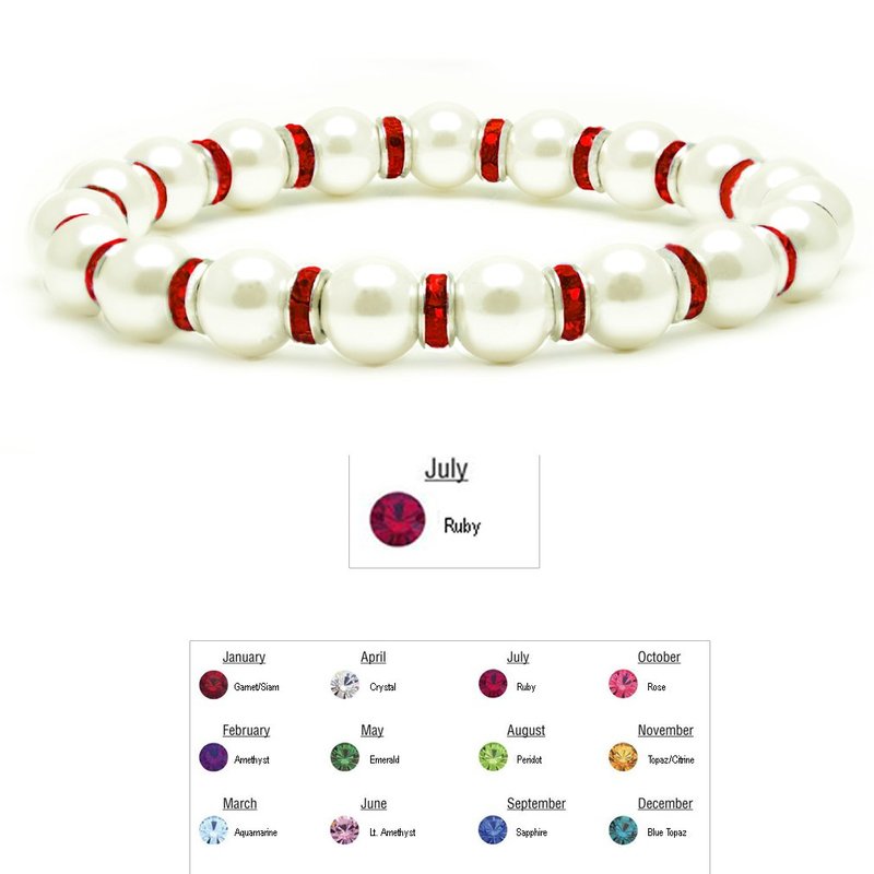 Accents Kingdom Women's Magnetic Bracelet White Tuchi Simulated Pearl Bracelet with Simulated Ruby Crystal, 7.5"