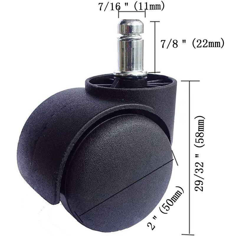 - 【STANDARD SIZE】: Our caster wheel rollers fit most office chair models available, Standard stem diameter: 7/16"(11mm), stem length: 7/8"(22mm),Office Chair Caster Wheel Maximum Weight Rating: 100Lbs each wheel and 500Lbs as a Set of 5.