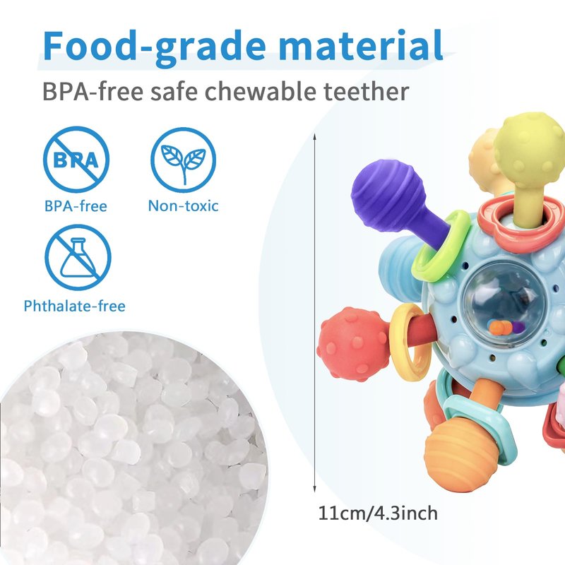 - Baby Montessori Toys: Built-in Movable Clear Balls with Beads that Makes a Pleasant Sound When Shaken, Can be Twisted 360°, 2 Halves of the Blue Ball Can be Twisted 180° and Make a Satisfying Clicking Sound, Teether Toys Can be Pull, Exercise Your Baby's Gripping Ability and Hands Strength and Flexibility.