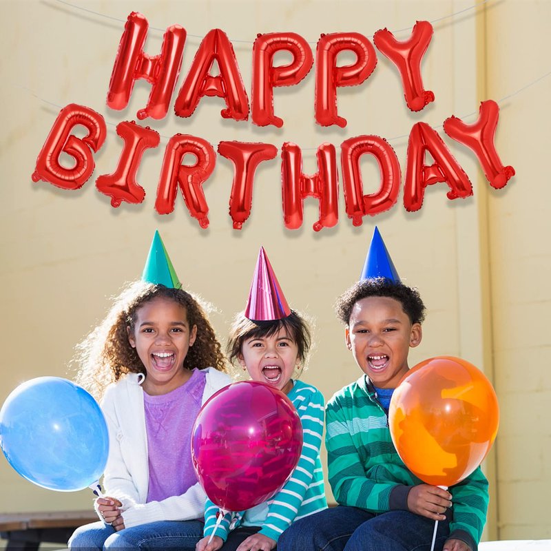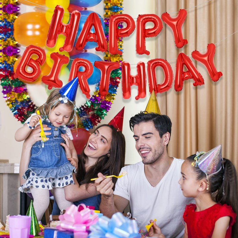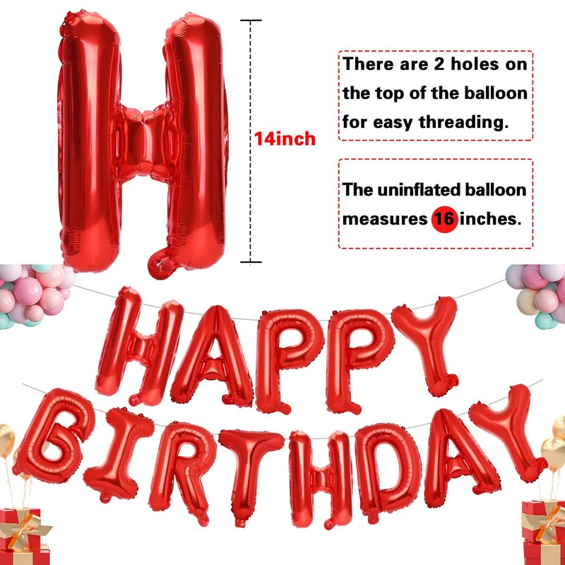 Accevo Red Happy Birthday Banner 16 Inch Mylar Foil Letters Balloons Happy Birthday Balloon for Kids, Child, Adults, Boys & Girls Birthday Banner Birthday Party Decorations Supplies