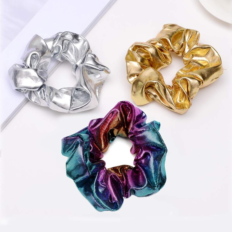ACCGLORY Shiny Scrunchies Metallic Hair Bands Elastic Hair Ties Set Glitter Ponytail Holder Soft Scrunchy for Women(Hair Scrunchies Set)