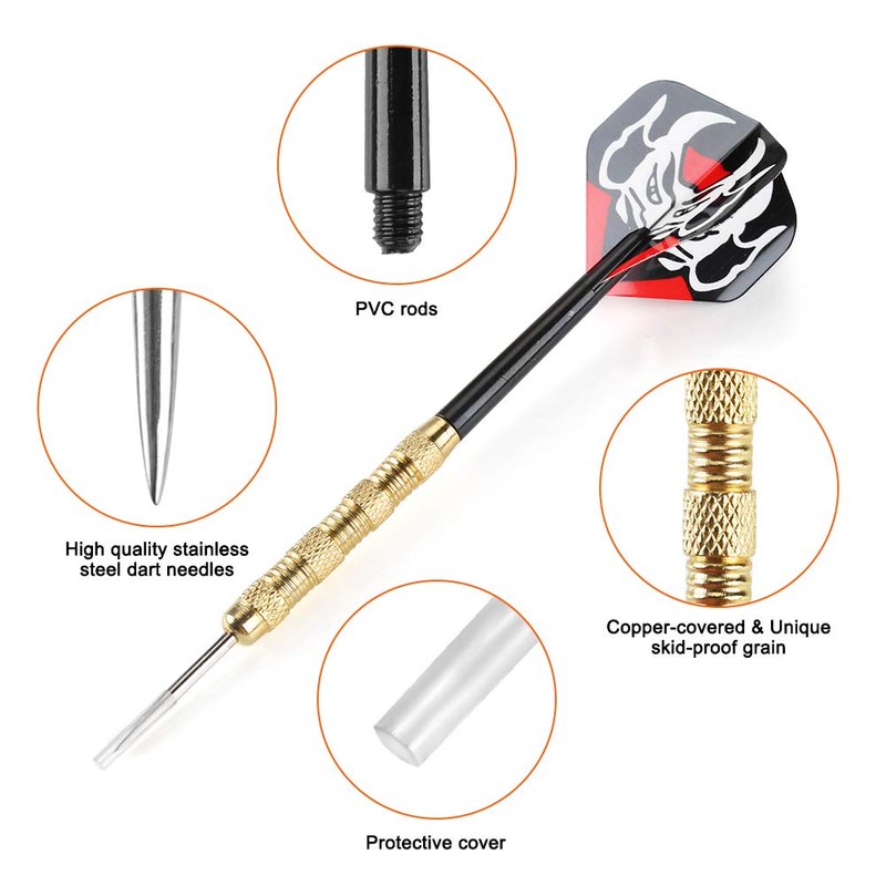 - Quality Material : High quality stainless steel dart tips, elegant copper-covered barrel and pvc rods , really durable .