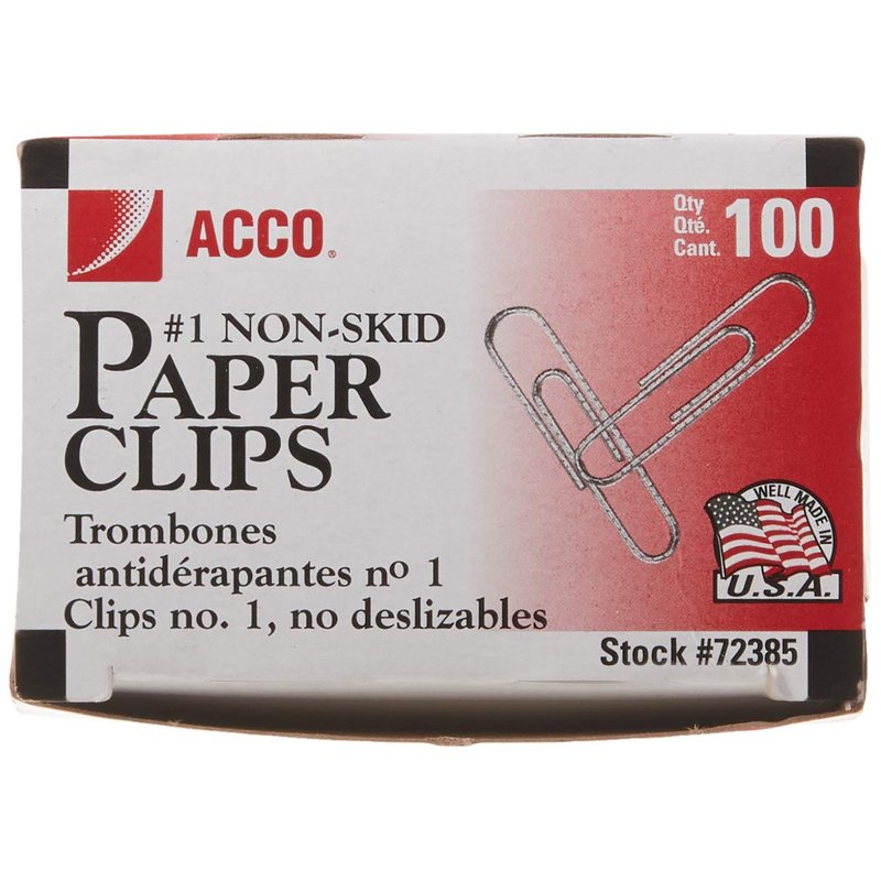 ACCO Brands 72385 Nonskid Economy Paper Clips, Steel Wire, No. 1, Silver, 100/Box, (ACC72385) (Pack of 10)