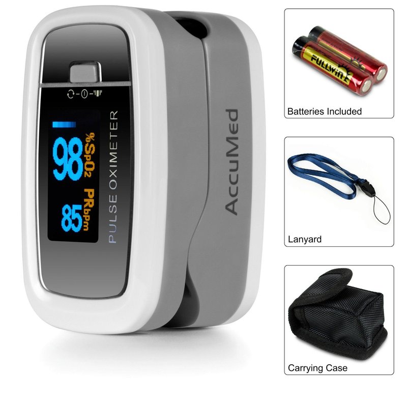 - DESIGNED FOR HOME USE, EXERCISE OR TRAVEL: While the AccuMed Fingertip Pulse Oximeter is handy for detecting vital signs, it is not intended for medical use but rather for situations where you need to know your oxygen level before and after your workout or sports such as running, hiking or cycling, or while traveling in an aircraft.