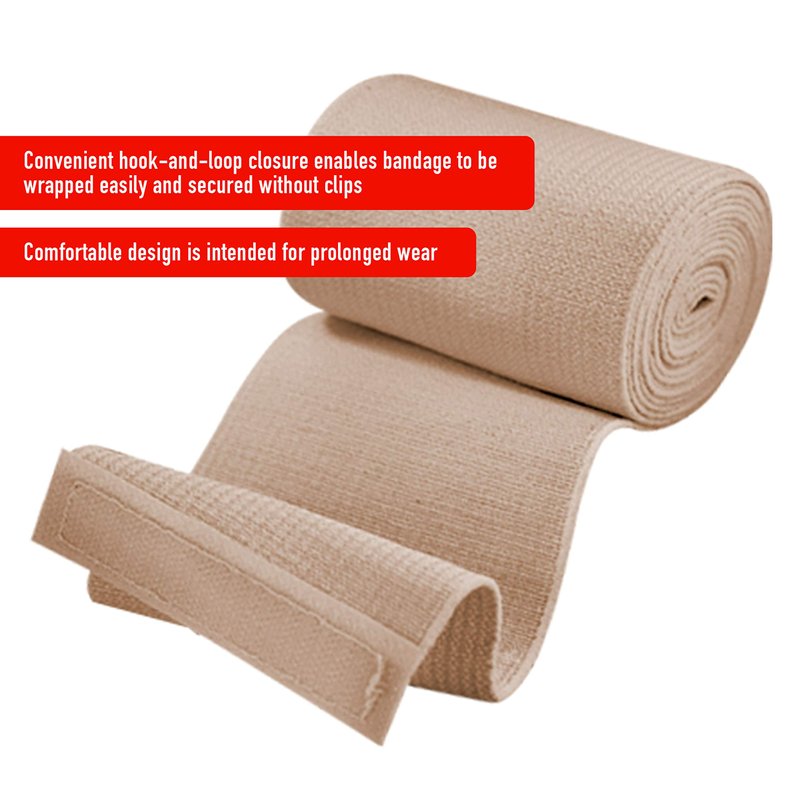 - Elastic compression bandages have a hook-and-loop closure that ensures easy wrapping and securing of the bandage around the wounded area, without needing any clips