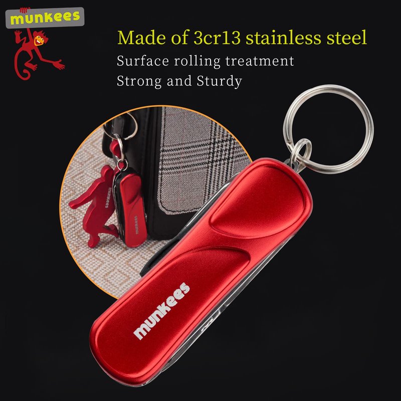 Ace Camp Munkees 6-Function Manicure Keychain Multi-Tool, Nail File, Fingernail Clippers, Scissors, Knife, Tweezers, Cuticle Pusher, Trimmer, Remover, Mini Portable Pocket Key Ring Gift