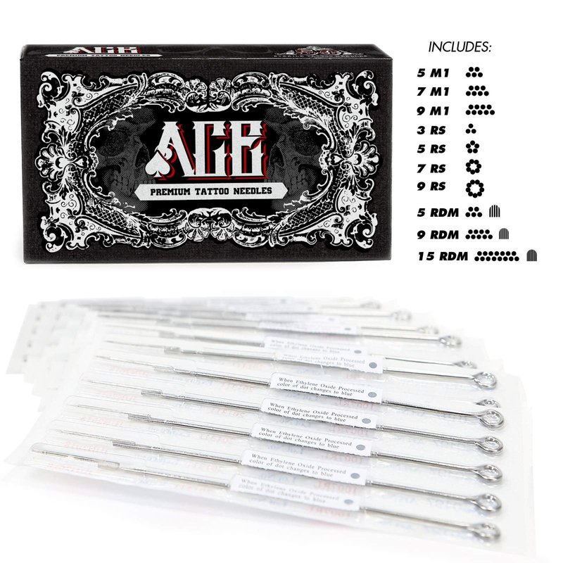 ACE Needles 50 Mixed Assorted Tattoo Needles 10 Sizes - Round Shader 3 5 7 9 11 15 RS RM