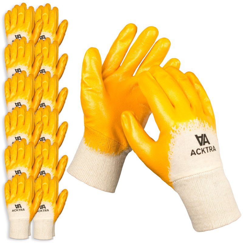 ACKTRA Nitrile Coated Cotton Safety WORK GLOVES 12 Pairs/Dozen, Knit Wrist Cuff, Multipurpose, for Men & Women, Orange, Small, WG001