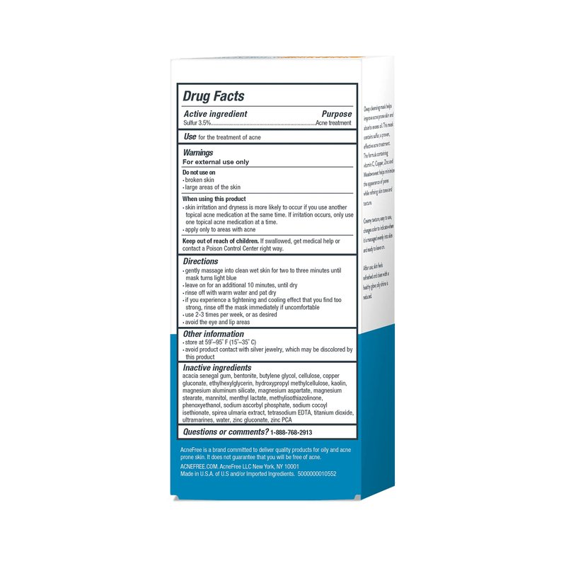 AcneFree Acne Clearing Sulfur Mask 1.7oz Absorbs Excess Oil and Unclogs Pores with Vitamin C and Bentonite Clay - 3-Pack