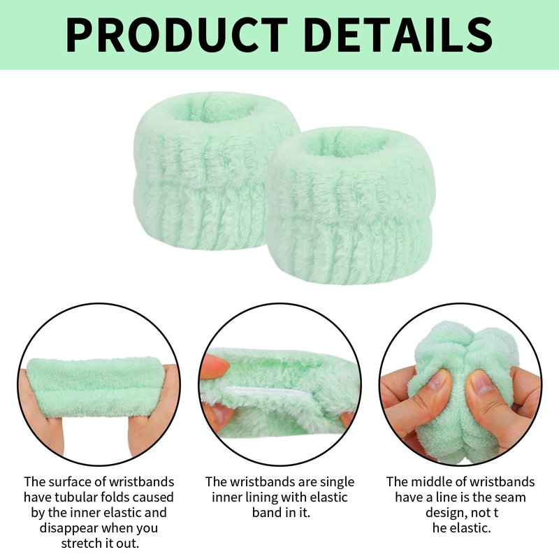 - Cute Absorbent Wristbands: The surface of spa wristbands have tubular folds caused by the inner elastic and disappear when you stretch it out. The face washing wristbands are single inner lining with elastic band in it. The middle of wrist washbands have a line is the seam design, not the elastic.