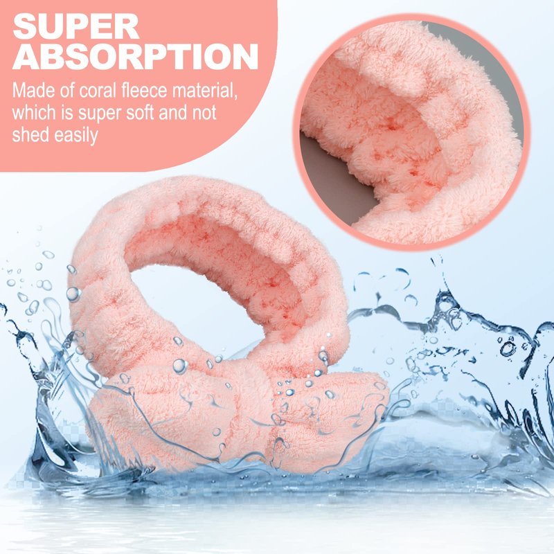 ACO-UINT 6Pcs Spa Headbands and Wrist Washband Set, Pink Headband for Washing Face Towel Wristbands Make Up Headbands, Microfiber Hair Band Skincare Headbands Absorbent Wrist Sweatband for Women