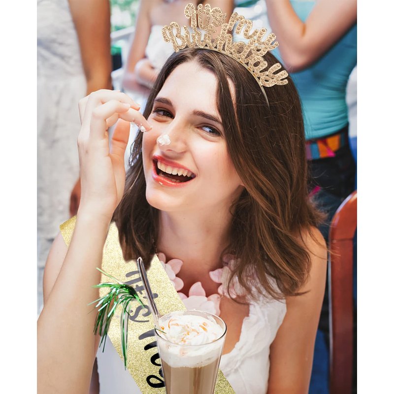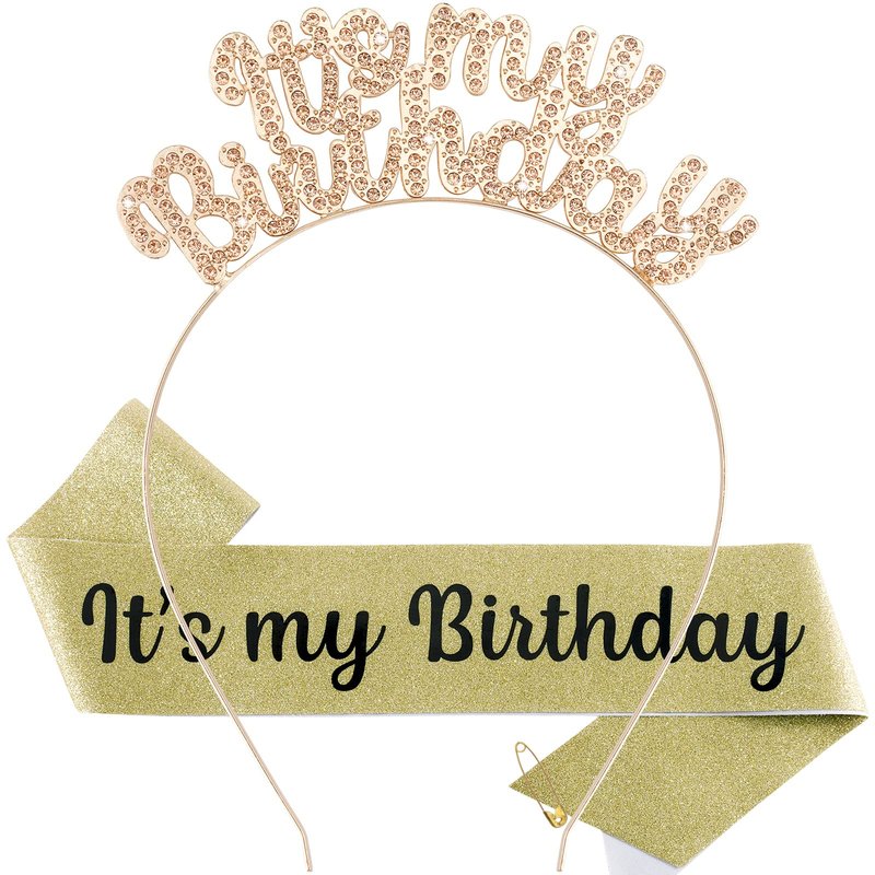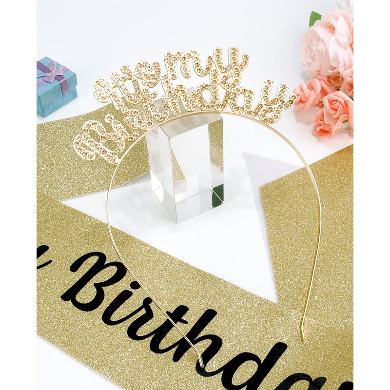 ACO-UINT Birthday Crown for Girls, Cute Birthday Sash & Birthday Tiara for Women Set, Sweet Birthday Headband Birthday Decorations It's My Birthday Headband Birthday Gifts for Women (Champagne)