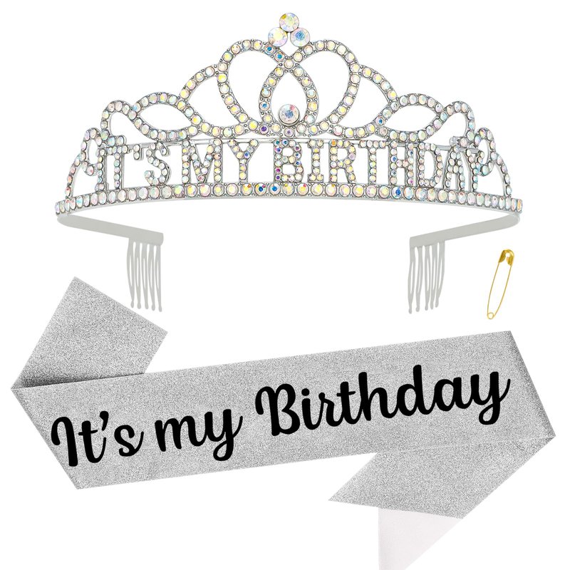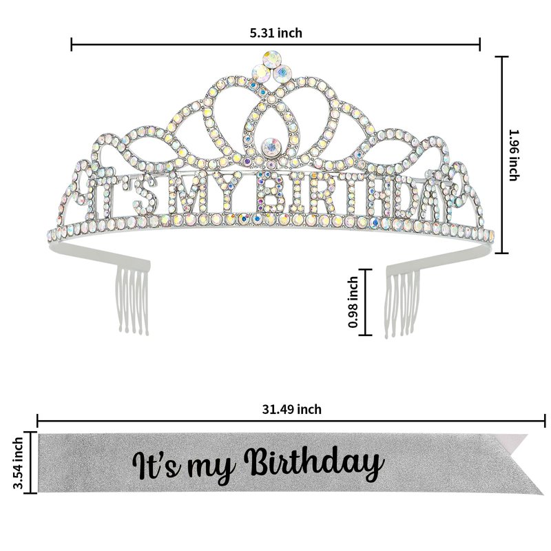 ACO-UINT Birthday Crown for Women, AB Rhinestone Birthday Headband Birthday Sash It's My Birthday Crown, Birthday Girl Crown Birthday Tiara Birthday Decorations Birthday Gifts
