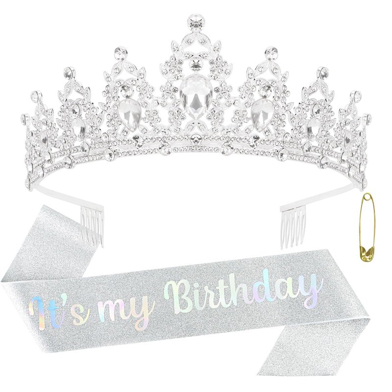 ACO-UINT Silver Birthday Crown for Women, Birthday Headband It's My Birthday Sash Birthday Tiara, Birthday Girl Crown Birthday Queen Tiara Birthday Decorations Gifts