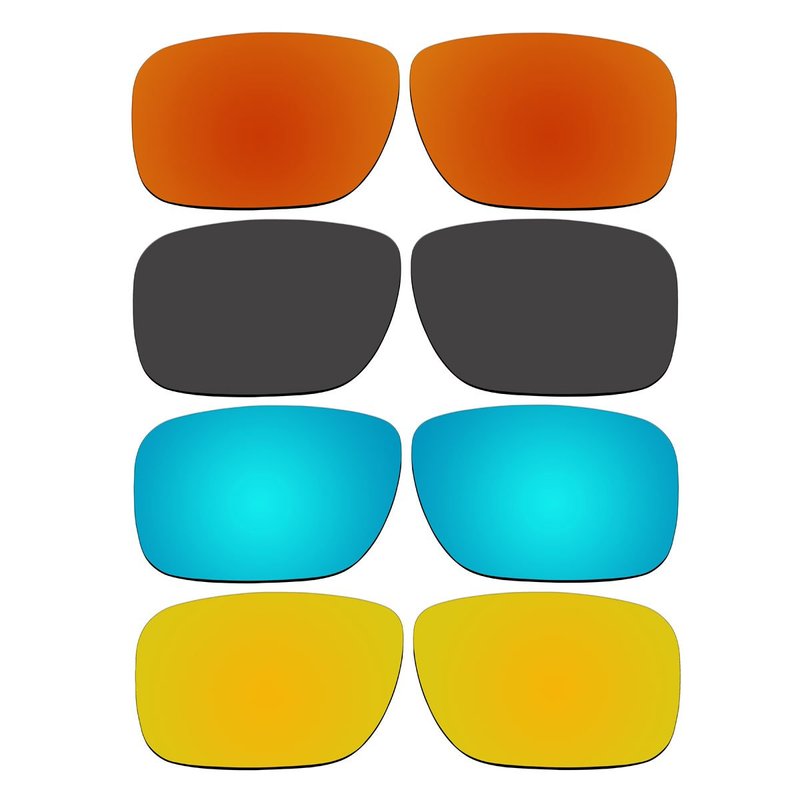 - 4 Pair Lenses - Fire Red Mirror Coating | Black | Ice Blue Mirror Coating | Gold Mirror Coating. This Lenses Only Fit Oakley Holbrook Sunglasses. If you are not sure, please search the SKU # which is marked on your frame. (Fit SKU: OO9102)